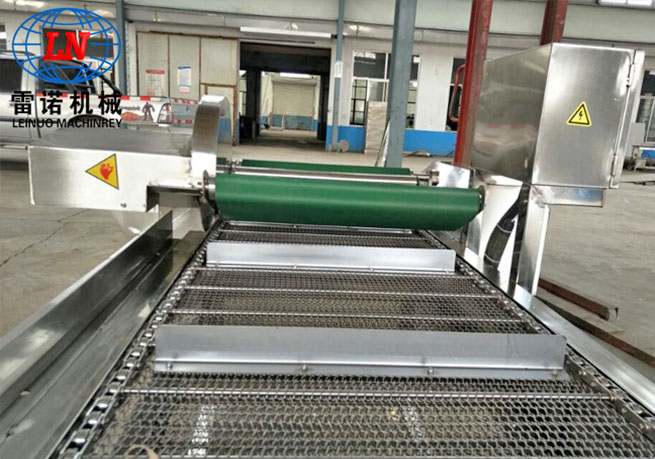 該流水線主要由清洗段、提升輸送段、震動瀝水段以及風干除水段組成,主要用于袋裝食品的高低溫殺菌后,產品表面油污、油漬的連續清洗及風干。